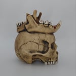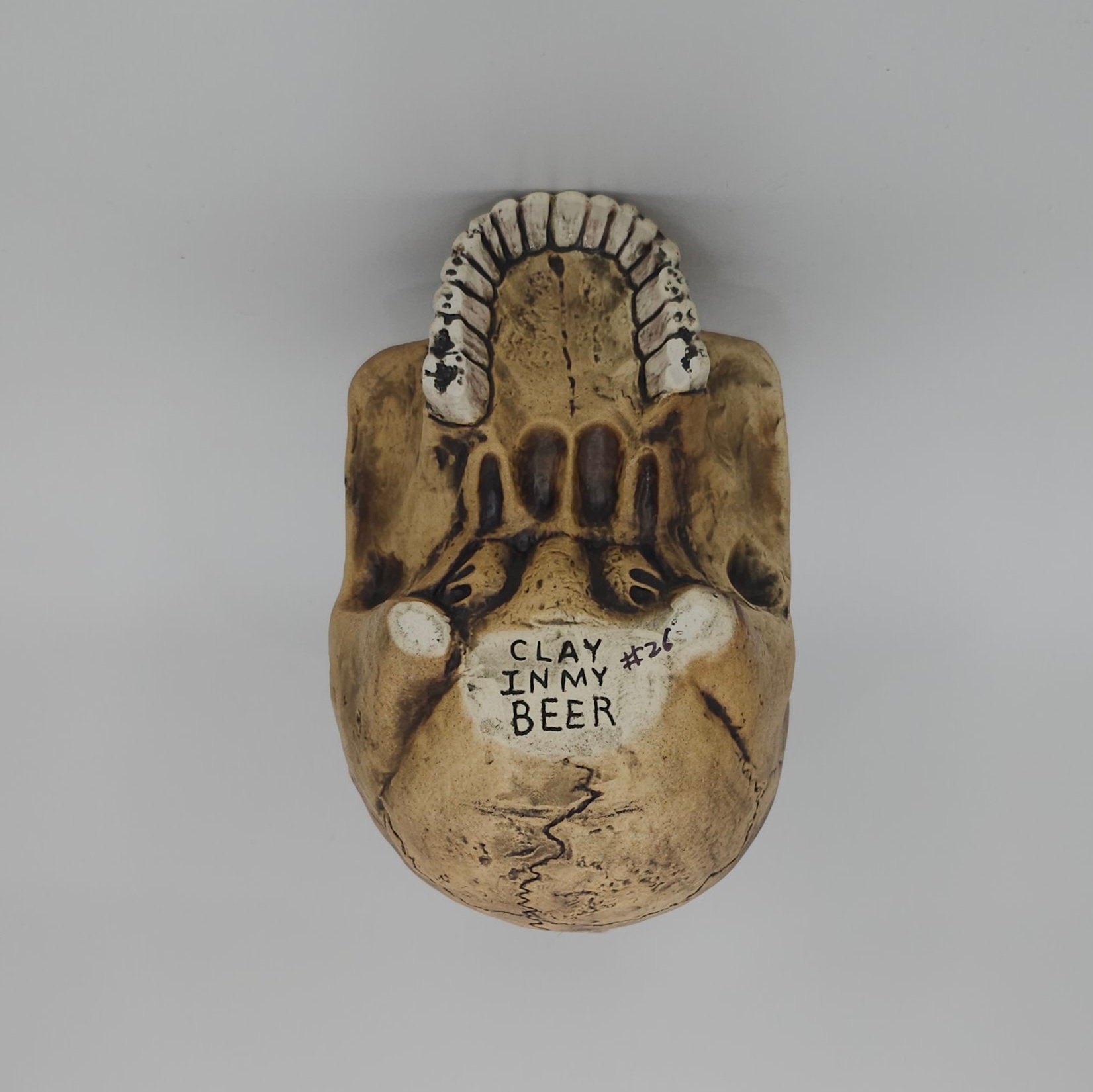Ceramic skull mug with jaguar and human jawbone crown. Fired to cone 6 (2232 degrees Fahrenheit) and can hold 12-13 ounces, perfect for your favorite cocktail, beer, coffee, or the blood of your enemies. Stop drinking like a peasant, drink like a king!
